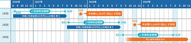 年会費翌年無料判定およびボーナスポイントのショッピング利用積算期間